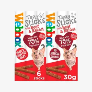 Pamper your feline friend with Webbox Tasty Sticks – crunchy, irresistible treats cats love. Made with high-quality ingredients, these sticks are perfect for rewarding, training, or simply giving your cat a tasty snack between meals.